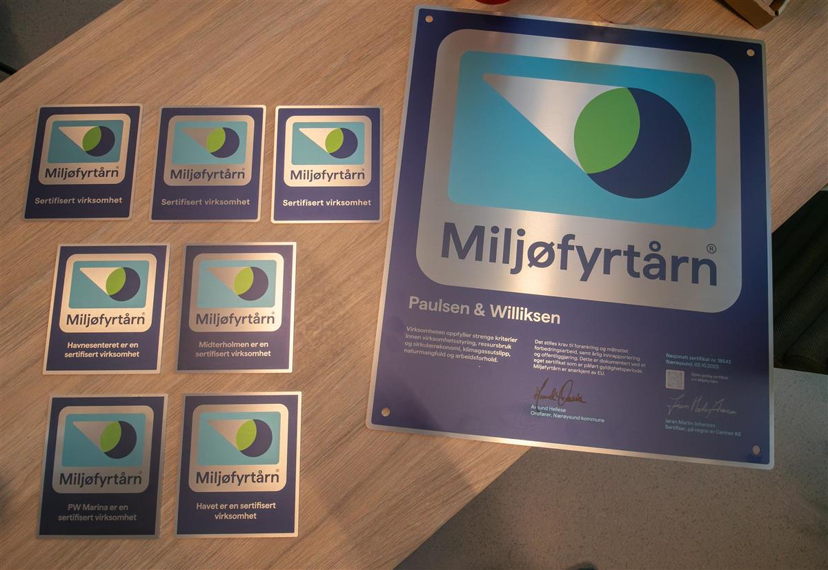 – Miljøsertifisering er ikke noe som er pålagt, men det gir flere fordeler blant annet når man skal søke på gunstige lån eller være med på anbudsrunder, sa ordføreren da han delte ut Miljøfyrtårn-plakett til Paulsen og Williksen AS. Hellesø la til at han håper at enda flere lokale bedrifter følger etter og blir miljøsertifisert.